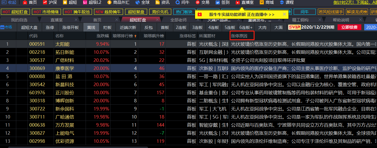 除了以上这7大股票池,股牛牛超短盯盘内还有三大短线选股利器,涨停因子、股市琅琊榜和涨停原因。